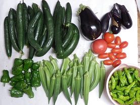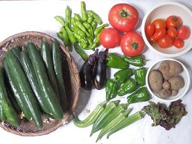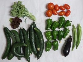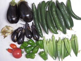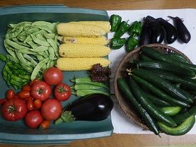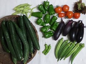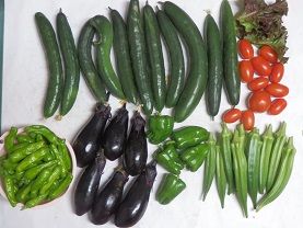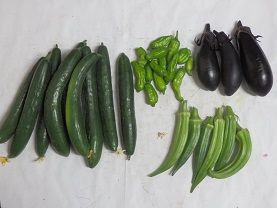 畑の野菜は、キュウリ、ナスはだんだん収穫が少し落ち着いてきました。