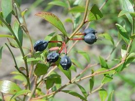 春に苗を購入して植えたブルーベリーですが、今年は実がつかないと思っていたら、2本のうち1本に少しだけ実がつきました。