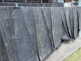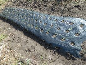 撤去と同時に、マルチの間に敷いていた除草シートも取り外し、洗ってから片付けます。