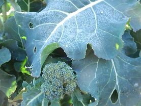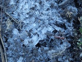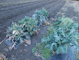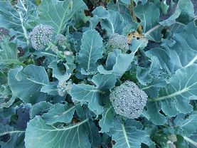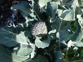 10時ころ畑に行ってみたら、日陰にはまだ霜柱が残っていましたが、唯一残っているブロッコリーは元気でいてくれました。