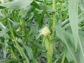 トウモロコシは第一弾に実ができてきています。でも、虫食いもたくさん。
