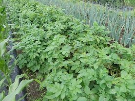 ジャガイモは土寄せがあまりできず、葉が広がってしまいました。