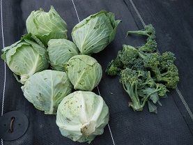 キャベツとブロッコリーの脇芽。青虫がたくさん出てきたので全てとり、撤収しました。