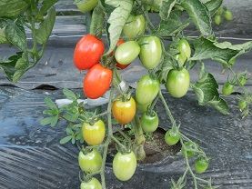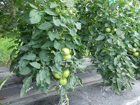 ミニトマトは少しずつ赤くなっていますが、大玉は青くて食べられるのはまだ先です。
