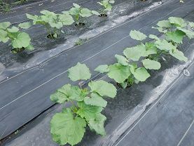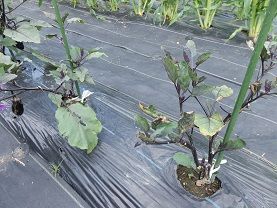 みずなす2本(右)がアブラムシの影響で元気ありませんが、なんとか頑張っています。