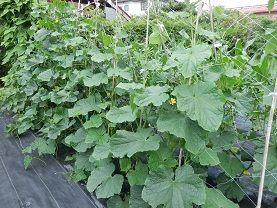 キュウリ(左)、モロッコ(右)は収穫がだんだん増えてきました。