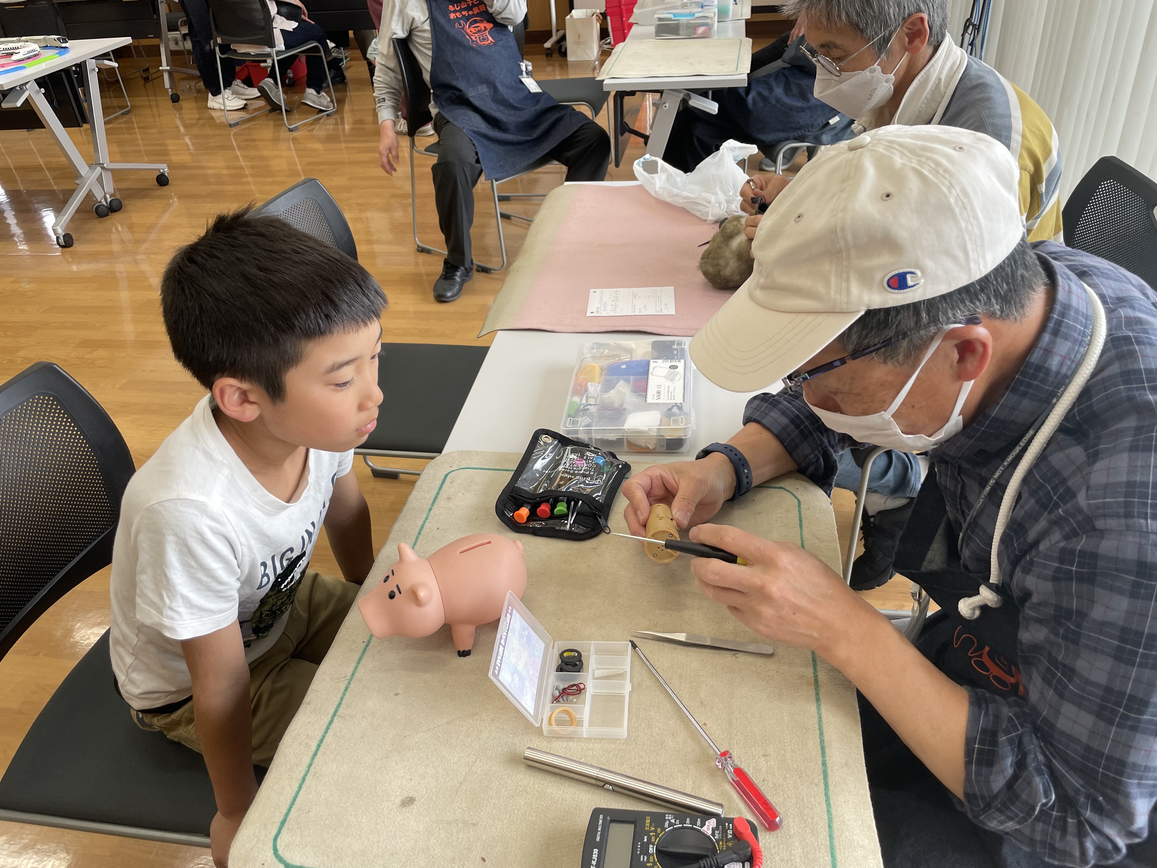 子どものおもちゃを修理するボランティアの集まりです。 おもちゃの修理を通じて、人や物を大切にする心、工夫する喜びを子どもや保護者に伝えるために活動しています。