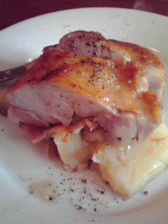 サラダカプリチョーザ & ローストポーク 800円(*^-^)=b グゥゥ~って 言いたいとこだったんだけど…カプリチョーザ は こんなことも あるんだよねぇ多分 レバー 鶏かなぁ無理だな と思ったけどとりあえず 一口 いってみたやっぱ ダメxxxxもう 全てダメ臭い 舌触り…その下の 葉っぱまで クサイ!ここで 初めてごめんなさい しちゃいました…