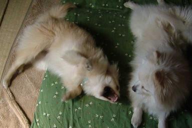 ワンコ達は、ぽかぽかのお日様にあたって、ぼ~っとしています。。先日、あおちゃんは、お父さんに、シャンプーしてもらいました。。