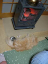 先日壊れたファンヒーターの替わりに、石油ストーブを出してもらいました。。早速、あおちゃんが、ストーブを占領・・・思ったより、新しくて、よかった~。でも、いつ買ったのかな??このストーブは、上で、お湯も沸かせるし、お餅も焼けそうだし、ファンヒーターより「使える」!なんか、エコロジー今年は、ファンヒーター無くてもいいかも!あおちゃん、そんな前だと、あちちだよ!