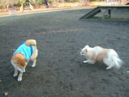 お正月休み、東京「昭和記念公園」に行きました~ポロンは、初めてのドックランなので、かなり怖かったみたい…ちっちゃい体で、威嚇しまくりでした。「ぽろん、その柴ちゃんは優しいこだよ!」