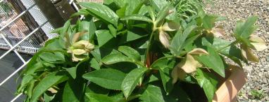 春先に咲くのに、何故クリスマスローズ!?小さな苗から、6~7年、今年やっと種を、つけました。。庭も、まだまだ満開です。。