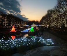 「昭和記念公園」では、お正月限定のライトアップが夕方5時から、行われていました。右の三角の光は、シャンパングラスのタワーで、上から水が流れ落ちていて、綺麗だった~