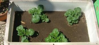 プランターのジャガイモ、ちょっとづつ、大きくなってます。。プランターに植え付け予定の「中玉トマト」「デルモンテ」のマークが付いていて、ミニトマトより、甘みが強く、去年植えて、美味しかったものです。。