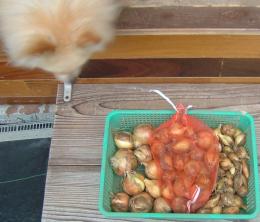去年9月、タマネギの種を蒔き、80個分、植え付けました。今月、やっと収穫時期を迎えました。長かったなー…あれっ!?小タマネギ??これじゃあ、カレー3~4回分!?何で、大きくならなかったのかな~??大きさは、大は、玉子大中は、うずら玉子大小は、らっきょ大