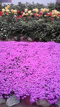 散歩がてら夕食の買い出しに出かけた近所の街角広場でシバザクラが満開に花を咲かせていました。春はいろいろな花々を目にする事ができて気分晴々、うれしい限りです。。。