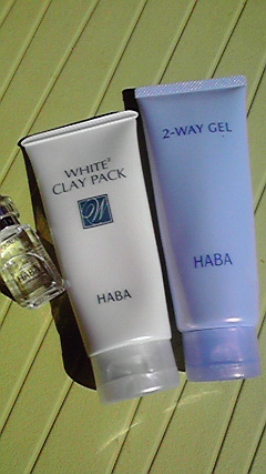 HABAの化粧品を長年愛用しています。主に基礎化粧品です。今回取り寄せた物は・・・2-WAY GEL 何度もリピートしています朝、洗顔後 マッサージ&パック用です。WHITE CLAY PACK くすみが取れるパック こちらは現在、売り切れたそうです。。。SQUA BALANCING GEL保湿用ジェルです。さっぱりタイプですがしっかり保湿できます。つるつるベース毛穴目立たなくするメイク下地です。 夏の暑さに乱れた肌を整えて肌年齢を少しでも若くキープできる様気をつけたいと思っています。