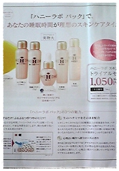 昨日の爆弾低気圧すごかったですね。ベランダの植木を室内に取り込んでいたので今日はベランダの掃除&整理整頓からはじまり。。。************************************今朝の朝刊折り込み広告にハニーラボのスキンケアトライアルセットが1,050円(送料無料)でお試しできるセットのお知らせが入っていました。こちらのハニーラボパック アットコスメのクチコミでも人気がありとにかく容器がかわいいので気になってました。このチャンスに試してみようかな と思っております。セット内容は★泡立てマッサージスポンジ(ミニ)★メイク落とし(13ml)★洗顔パウダー(7g)★パック(10ml)★化粧水(15ml)★乳液(15ml) 雑誌やブログで紹介され話題沸騰中♪ 即納 【山田養蜂場】 ハニーラボパック 50ml <やまだようほうじょう><はちみつ化粧品>