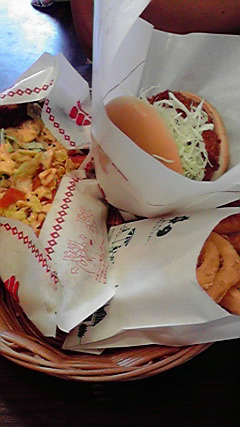 モスバーガーの ナン・タコステレビ朝日の番組 お試しかっ! で小栗旬が出ていた回でおいしそうだったので食べてみたかったんです。美味しかったですよ!!飲み物を ラッシー にしたんですがビールの方が合うかも です。ナンタコス スパイシーで夏にいいですね。ちなみに ナンタコスの横は主人が食べた海老カツバーガーです。モスバーガーでの休日ランチでした!