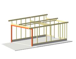 いろいろ考えて合成梁にしました。自重で長期的に撓む恐れがあるので自重を軽くして上下の梁を合成して構造用合板で挟み込むやり方にしてみました。赤い部分は、H型鋼で剛性をとっています。ちなみに屋根材はデッキルーフです。株式会社小野建設 一級建築士事務所 onoken.net