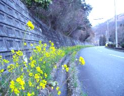 高瀬湖の道べりに菜の花が咲いていました。今年初めてです。菜の花や 月は東に日は西に(与謝蕪村・江戸中期) 見渡す限りの菜の花畑。土と花の香り。黄色。昼から夜に切りかわる静寂。昼でも夜でもない切り取られた時間。海に沈む夕日。視線を動かすと白い月。自身の肉体や呼吸さえも存在せず、体を離れた意識だけが香りと色とを同時に感じる……。 菜種梅雨:3月半ばより4月初めのぐづついた天気のこと。関東から九州にかけて菜の花が咲いた時期だからだそうだ。