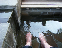 ホテルニュータナカである会に出席のため山口に出かけた。少々早めに出かけたため時間つぶしのためそこいらを散策しようと思ってホテル裏の公園にさしっかかったところでかわいらしい狐のいる池があった。そこは池ではなく足専門の温泉でした。生まれてはじめての経験をしようと靴下を脱ぎ足を放り込んだ。すごくリラックスした気分になりました。足湯の起源・効能 homeをクリックして株式会社小野建設 一級建築士事務所 onoken.net