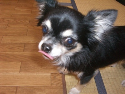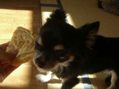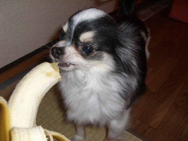 先日ブログお友達のももちゃんママさんちのももちゃんがバナナを食べてる姿を見てとってもかわいかったのでさっそく我が家のチワズにもあげてみた。たぶんバナナはお初?!