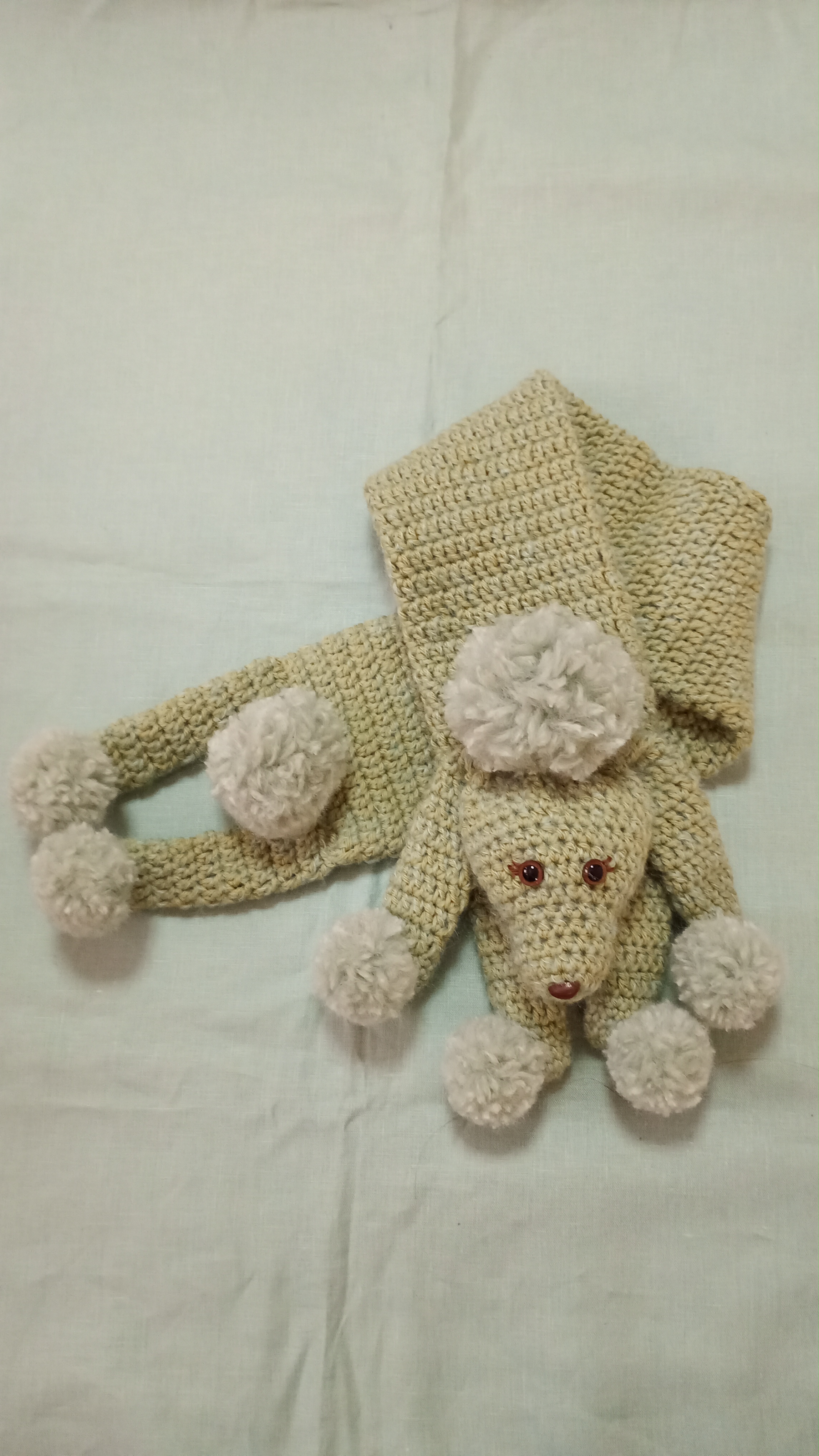 ピンクプードルのマフラーの続きですゴールデンウィークはお出かけが続いたのであまり編めませんでした体を長編みで56段編み終えてパーツが揃ったところですひたすら長編み、楽しいですよね🎵あとはポンポンを作ってお顔を作って形にするだけです(*´∀`*)それで目と鼻を用意しておこうと出してみました黄緑のプードルに赤の目はどうかな?と思えて。。。。(ピンクプードルの時はこの赤い目を付けます)ちょっと違う目にしてみようと楽天で探してみましたどうかな〜?届いたらまた、進めます!クリスタルアイ ブラウン 12mm 2個入 ハマナカ H220-112-2(A12) あみぐるみEYE/ 編みぐるみ/ 目玉 /手芸 /アニマルアイ /あみぐるみアイ
