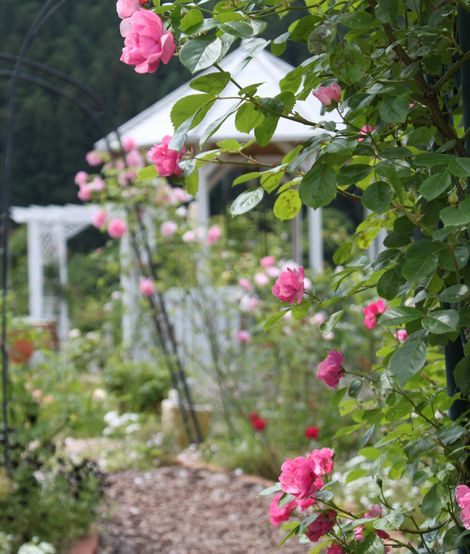 こんにちは・・・ 5月のお庭楽しんでもらえたので今日は6月のお庭を覗いてみました。アンジェラのアーチから お庭を眺めます。今年はもう少し伸びるのでしょうか・・なかなかアーチを覆うようになりませんねぇー足元には兎さんがいて ラベンダーやブラキカムが大きくなってますが今年はラベンダーは枯れましたブラキカムもかろうじて生きていますけどこんな風に咲くかは心配ですよでもここは 手入れにはいる小道をつくって違うお花を植え込んでます。 一番向こう側がアンジェラですよ ピンクの薔薇は オクタビア・ヒル 白い薔薇は ペニーレーン向こうに見えるピンクのが さっきのオクタビア・ヒルです今年はここには サークルストーンを敷いてますよ 向こうに見えるのが 3連アーチでここには 7種類の薔薇を・・・今年はどこまで伸びてくれるかしら~ お庭からでてみると こんなのどかな風景も広がってて 今は菜の花でいっぱいこの木の柵が大好きなんですよここには 牛さんが放されて いつも草を食べてますよ にほんブログ村こちらのバナーを押して応援くださいね~昨日は沢山コメントありがとうございます昨日から少し具合が悪いので 訪問できないかもしれないですがなるべく伺いますごめんなさいね。