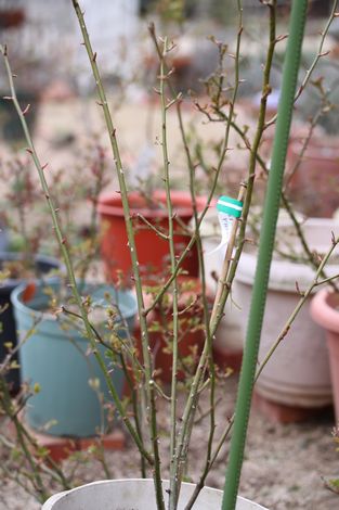 こんにちは^^なんだか悲しいことがいっぱい 早く春来てほしいよー門からの階段を降りると 右手にこの お手入れに入る道をつくりました。昨日のブログでラベンダーやブラキカムがわさわさだった所なんです井戸のポンプのホースが埋まっててあまり深く掘れないので こんな道を作りました。両脇には 匂いすみれ ブラキカム フラワーレース ジギタリスと クリスマスローズを植えてるんです。そして おおでまりとライラックの向こうは ロックガーデンに咲くクリスマスローズその後ろは 柏葉あじさいと木工薔薇です。沢山咲いてるクリローは道の駅で買ったのですが 今年は全然覗いてませんまだ売ってるかな~クリローの切り花もいっぱい売ってたんですよ。4月には お花見会が待ってるので お庭を綺麗にしてますけど今日は風が強くて寒いです ゴミを捨てに行きがてら 菜の花を撮ってきました家の敷地の下にある 菜の花畑です。これは 庭にさいたたった一株の菜の花です。もっと咲くかなと思ったけど一株しか残りませんでした。小さいのを移植してこようかな~ へへへ黄色い花をみると 自然と元気になれますねーこの前作った球根花壇のムスカリも元気に咲こうとしてますよもうすぐだー!!私はムスカリが大好きで お庭のあちこちに植えてるんですよ。球根のセールの穴場は コメリで 行くたびに買いあさっては植えてました。しかし><去年つくった ハナミズキの下のムスカリ畑からは芽がでてません。スノーフレークだけのようですもぐらが食べたのでしょうか????こんな チューリップもありました><誰がかじったんじゃー!!!毎年植えてる鉢に 今年もムスカリを・・・下をみて~鉢が割れて 欠けましたでも 鉢の台で止まってるので なんとかもってます。ポールズヒマラヤンムスクもガゼボの屋根に届いたんですよシュートもいっぱいで どんな剪定をしたらいいやらですがそのまま 延ばしてます。夫に相談すると 邪魔に思うのだけ切っとけー!っていうんですよそれもそうだな ちょっと気が楽になりました。薔薇の芽同じところから こんな風に3つもでてる芽は 立派そうな芽を1つ残して芽かきしています。これは 両サイドの芽をとりました。あと 1週間に1度 木酢液の1000倍を散布してます。我が家はうどん粉病の心配はないのですが バラゾウムシには悩まされました今年は薬散布しようかなと思ってますが みなさんは何を撒かれてますか教えてくださいね。 にほんブログ村いつも応援ありがとうございます。とっても励みになりますこちらを ポチっとお願いしますね(*^_^*)