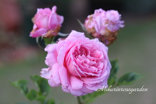 おはようございます^^久しぶりにはじめての方が二人もコメントくださって ブログをお持ちじゃなさそうだったので お返事を書きました。いつもコメントくださってる方は訪問のときにお話しさせてくださいね~^^ 昨夜はよく降りましたね><雨で目が度々覚めるほどでしたが 朝起きて が~~~~んヘリテージのシュートが折れてたのよ根元から お花も付いてたシュートだったんだけど しかも太かったの><もうひとつは助かりましたみて・・・ これよ お庭をみてまわるのが 怖かったけど被害はこれが一番ひどかったです。あとウェッジウッドローズのシュートこれは くくってたところから折れたのよもっとちゃんと 添え木しておけばよかった・・・ 背の高い草花も倒れてて お庭はなんだかスカスカになったようでしたよ 皆様の所では被害なかったですか? そんなショックなこともありましたけど薔薇も少し咲いてたのよ長くなるけど みてねー『 スピリット オブ フリーダム 』 蕾だった フリーダムが咲いてました。2番花だから 平べったい感じ そして オッと ナエマを忘れてました見てみましょ~~♪『 ナエマ 』このくらい色づいてました・・・これは 下についてた蕾が 先日咲いたものです。 『 ラブリーメイアン 』シュートの先のお花です。『 スィートジュリエット 』『 クィーンオブスェーデン 』少しだけ お庭が華やかになりました。 ランキングに参加中にほんブログ村いつもコメント&応援ありがとうございます♪