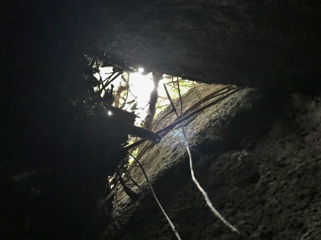 この画像でも分かると思うが、上方の岩面には削られた「線刻」を確認することができる。