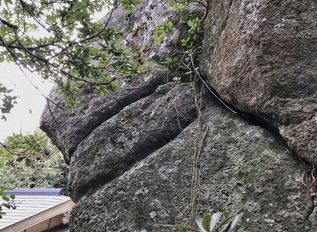 その中心となる巨大な岩を、社殿の横から見上げて撮影したものが上の画像だ。