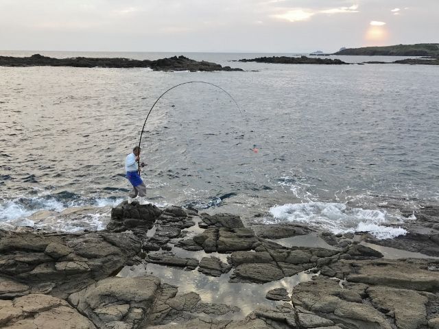 しかし私の心中では、目の前でこんな大物を釣る島人の姿を見ることができて・・・今日は朝から縁起がいい!・・・と感じた次第。