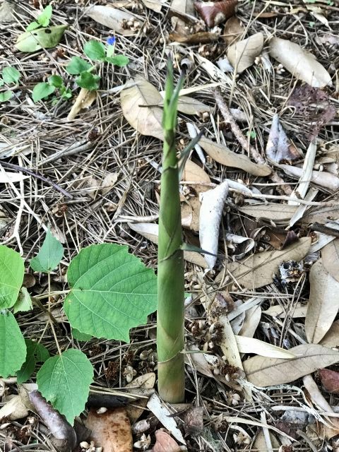 参拝者は神社の自然生えの「笹竹(女竹)」を折って持ち帰り、神棚に上げ「御守り」とするのが習慣だったそうだ。そこで上の画像は、当社を後にしようとした時に、たまたま参道脇に生えていた笹竹の苗を映したものである。こんな可憐な竹の苗を見たのは、後にも先にも初めてであった。