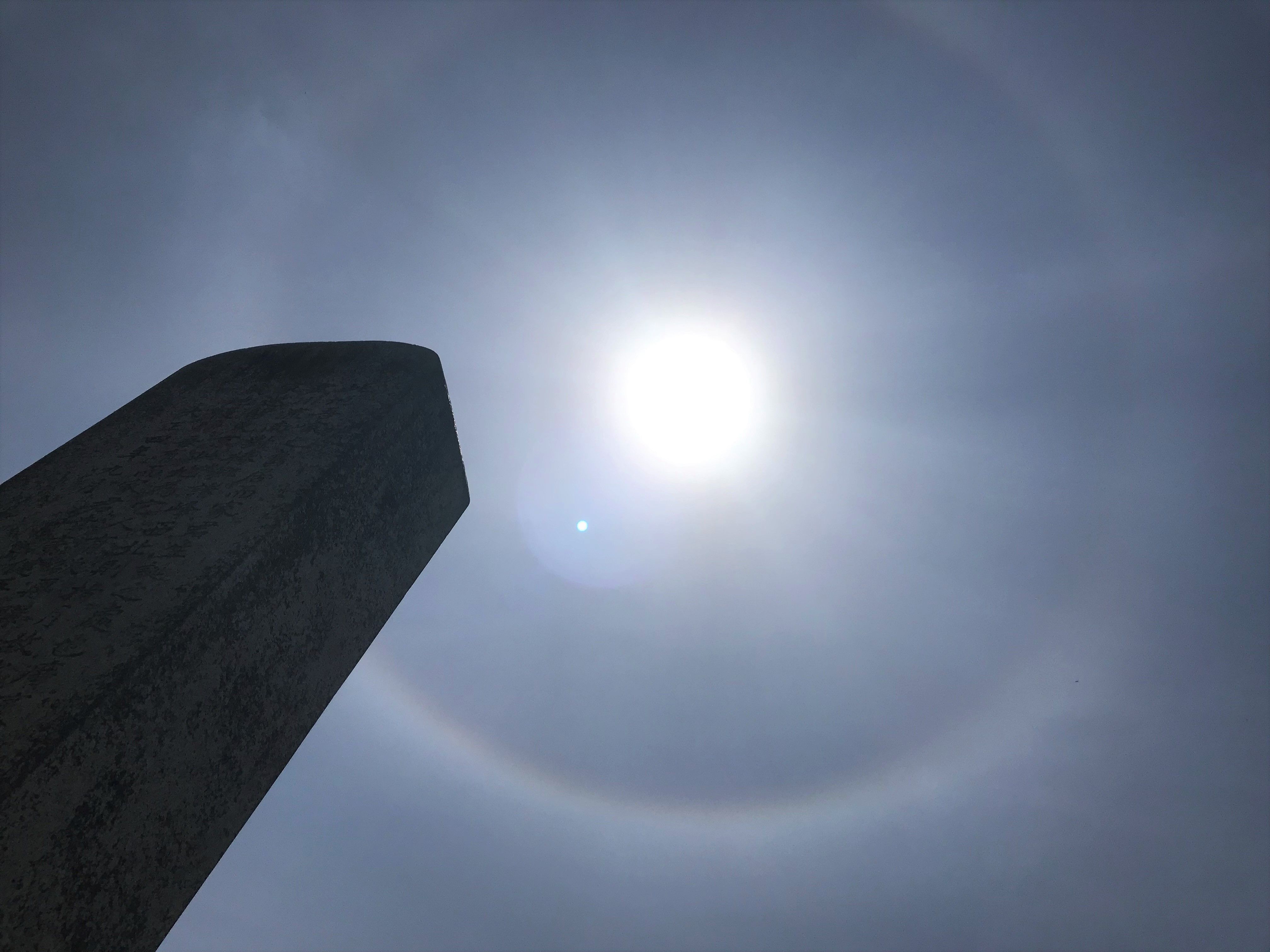 当地を巡りつつ往時を偲んだ後、石碑の下からフト天空を見上げると、下の画像のように大きな日輪が出ており、今も変わらぬ情報操作により貶められた山縣有朋公の「権威の復権」を象徴しているかのように感じられた。