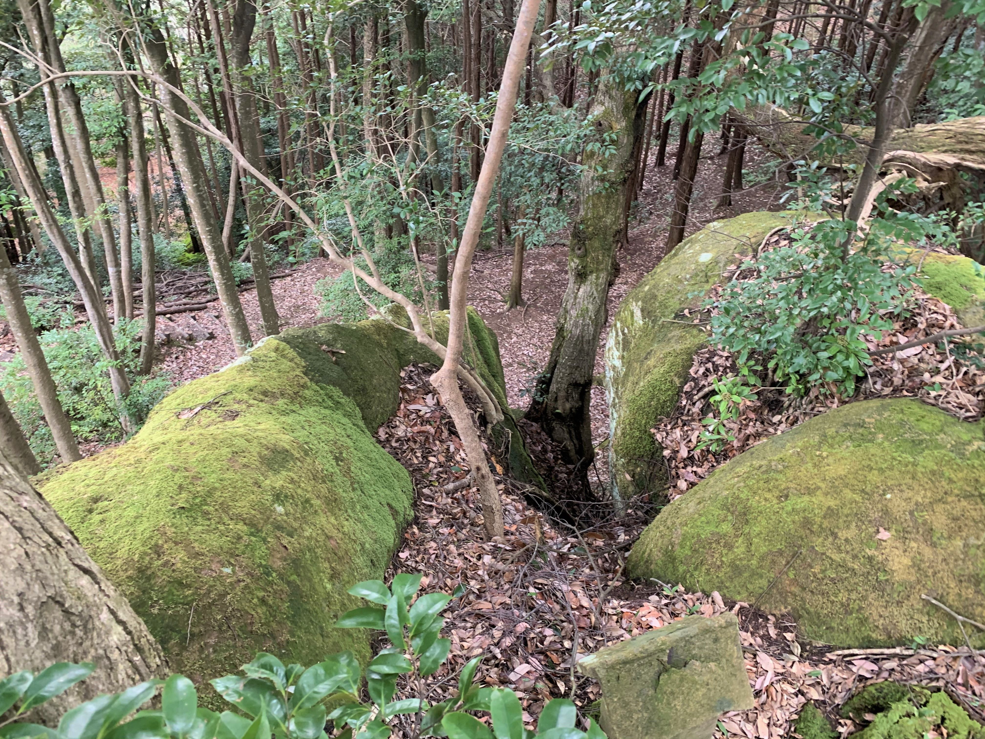 驚いたことに、その南方の男岩と北方の女岩の配置を方位磁石で調べてみると、かなり正確に南北に置かれていたので、その二つの岩が重なって見える更に南方に観測地点があったとすれば、南にある尖った男岩と北にある凹んだ女岩は、古代において精確な南北の照準を定めるための装置としての役割を担っていたと感じられた。