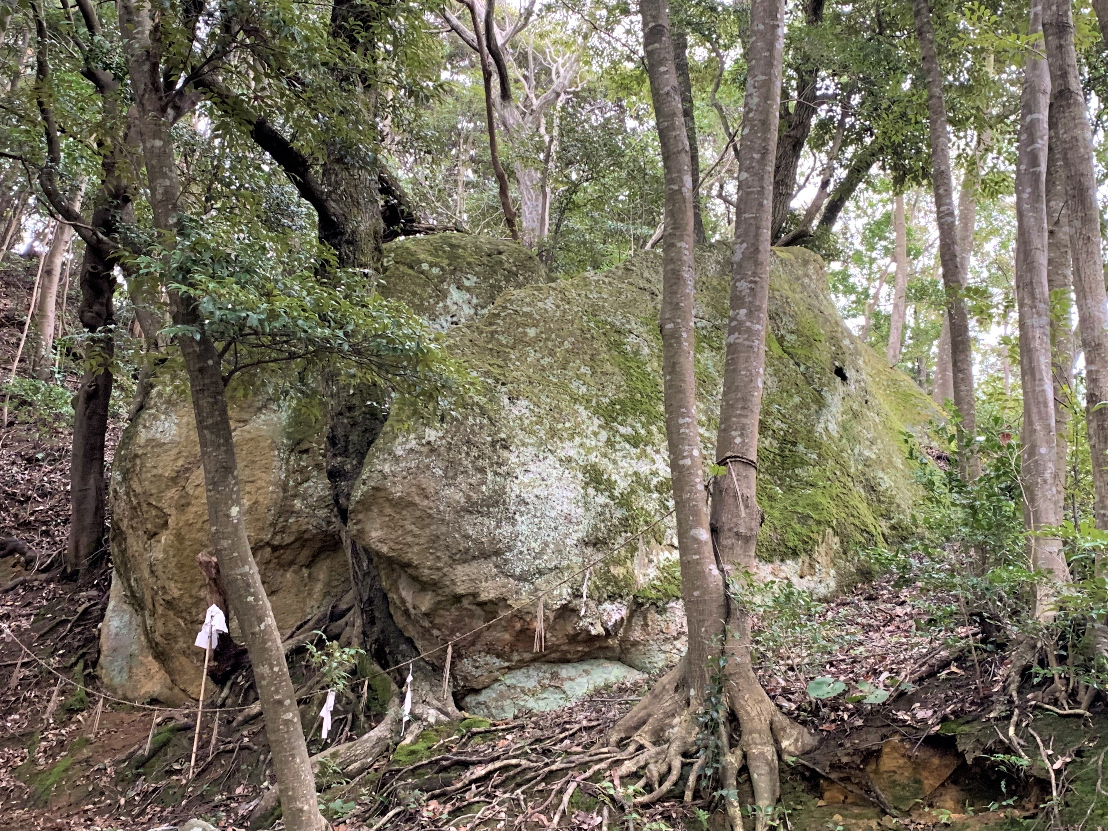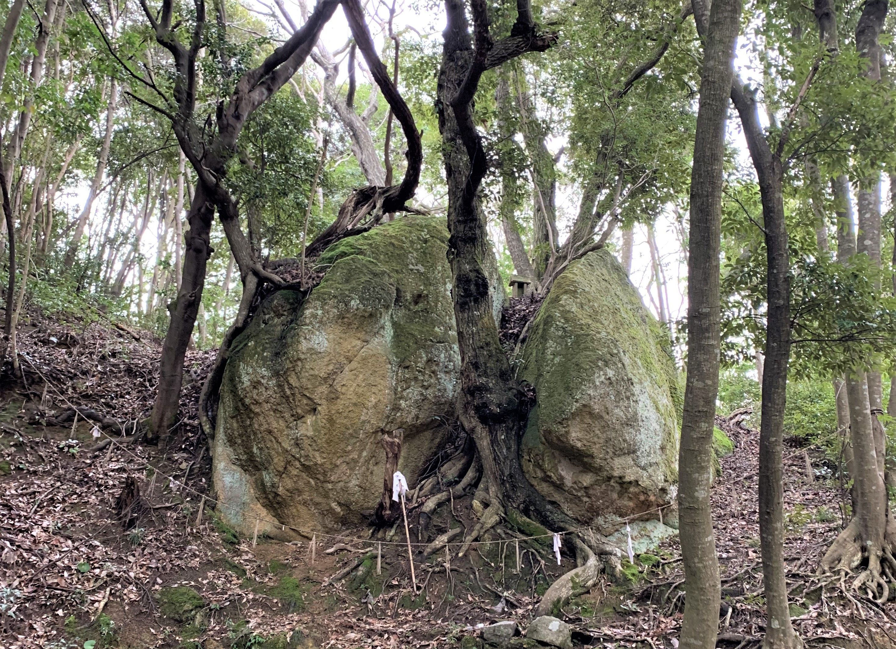 ちなみに、この「女夫岩」の南には、この「女夫岩」に向いた「矢」の形状の丘があったそうで、その「矢」は男神を表していたそうである。そして現在は、その「矢」の形状はわからなくなり、「矢頭」という地名だけが残っているということだ。
