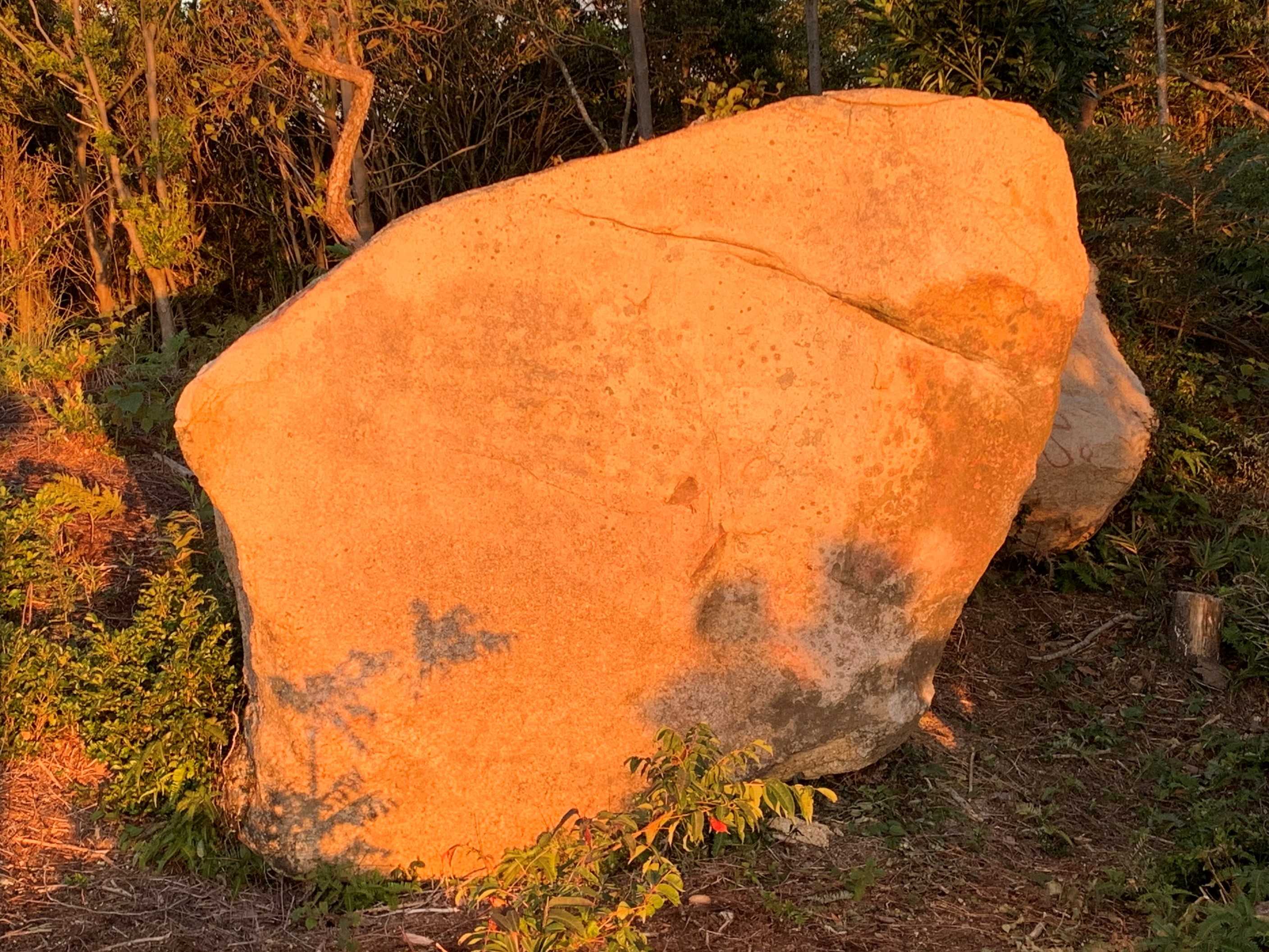 興味深いことに、今回この岩上に立ったことで気付いたのだが、この上の画像では左端に、どうやら大きな「円形」が刻まれているのである。また、同じ岩を真横から映した3つ上の画像には、右上の岩の最上部に、その「円形」を示す線がクッキリと刻んであるのだ。