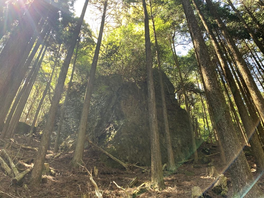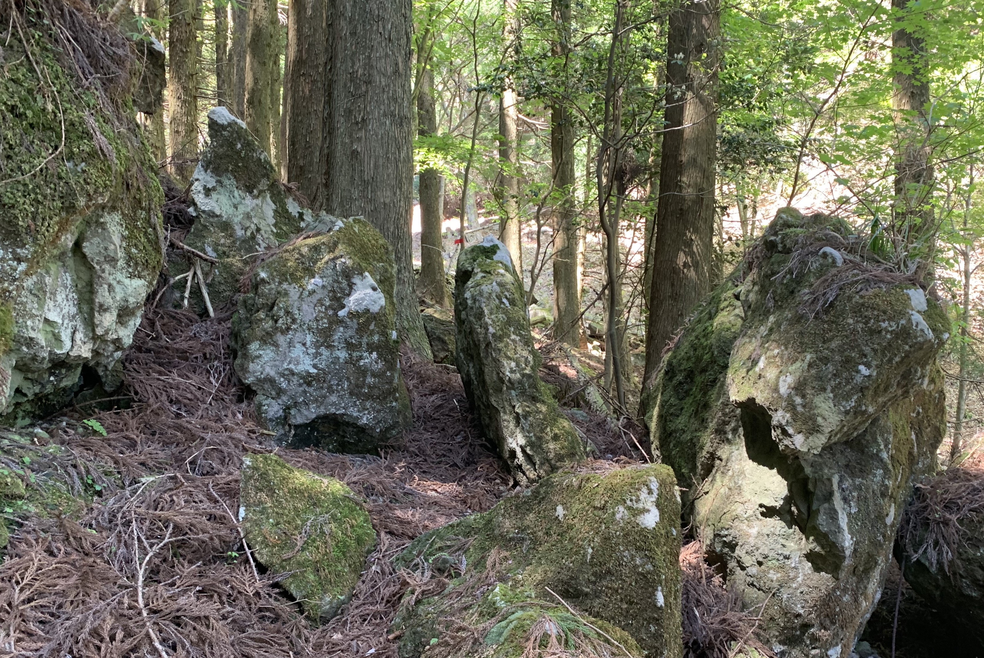 この一人の大人が通ることのできる”岩組”については、実は登る際にも気になっていたのだが、この場所より山道が急斜面にさしかかることから、山道の本格的な出入口を象徴する造形として意図的に配置されたものと感じた。