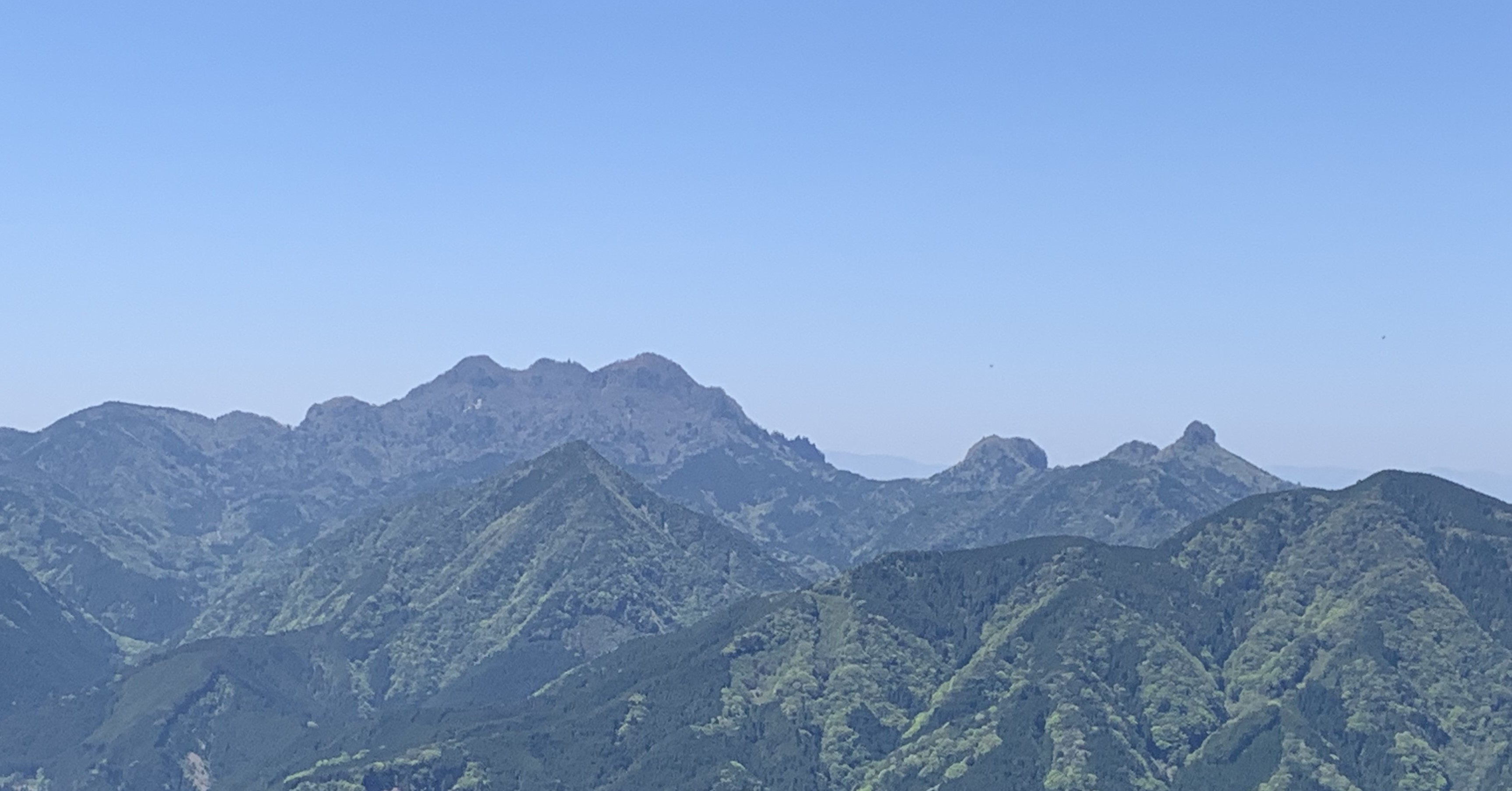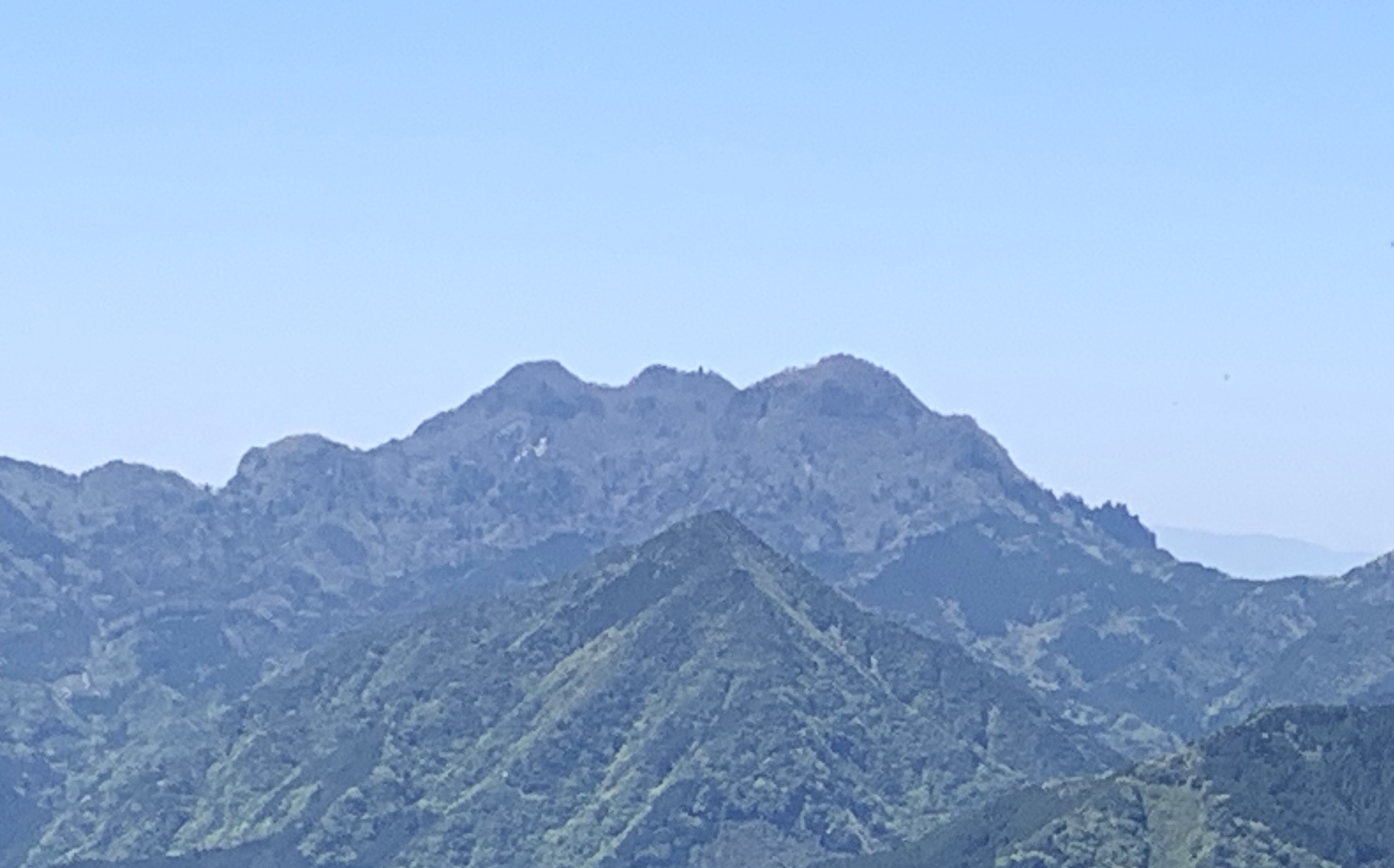 次の画像は、冒頭画像に映る山系の中央部に聳えた「英彦山」を形成する”三峰”を拡大したものだ。
