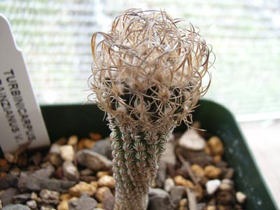 と~っても小さなサボだがその名はなんだかすごく長く、 ツルビニカルプス蕪城丸ミニマ(?)Turbinicarpus pseudomacrochele ssp. krainzianus minimus正式には、ツルビニカルプス・シュードマクロケレ・クラインジアヌス・ミニムス型 ?とかなんとか、よく分からん おとぼけ~な感じの頭がめちゃキュートムフッがっ! なぜかズルズルと倒れ(汗)急遽もう一株、保険に購入。 で、しばらくすると倒れた株に異変がっ?! んん?もしや、コレは 根? っつーことで、ざっくり切って挿してみた。 現在、倒れやすいので小石で支えている状態。 ツルビニくん、しっかり根付いてちょ~。ココ↓ ぽちんっ応援ありがとう! ●ツルビニカルプス パナロッティー ポット植え(実生)(1ポット分) ●蕪城丸 ポット植え(実生)(1ポット分)