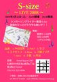 「S-size LIVE2008」 ご存知 島みやえいこ先生率いるシンガーソングライター集団 S-sizeによる ライブです。 年に1回しか行われないもので、毎年この時期にあわせ、それぞれが 新しいアルバムを仕上げてくるのです。 ニューアルバルの発売日となる記念すべきS-size LIVE 2008にぜひぜひお越しくださいね! 『S-size ~LIVE2008~』 ○日時:2008年8月23日(土) なんと大安! 16:00開場 16:30開演 ○場所:Event Space EDIT(エディット) 札幌市中央区南2条西6丁目 南2西6ビルB1F tel 011-223-4896 ○料金:前売り1,500円 当日 2,000円(共に1ドリンク付き) *チケットはカフェ「陽だまりのテラス」でも扱っていただいております。