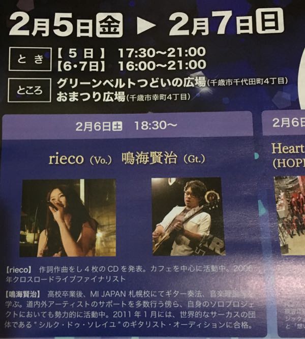 久しぶりの野外 あるねあるねハプニング 野外はなにが起こるかわからない! なんと今回はスピカーからラジオか何かが 流れ、曲も流れる中その曲とコラボレーション! どんな環境でも集中しなければ!と思うのが スピカーの音が耳に入る んんんー修行だと思わなければと何度も言い聞かせる そのうちマイクはプチプチ途切れる。これも修行だ! ハウリングピューピューバシバシ!修行修行 手作りのイベントならではのハプニング それすら楽しめ、笑に変えることが出来た 見方を変えると色々かわる。 そんな事を学びました。 鳴海賢治くん寒い中ありがとうございます 短い時間だったけどとても楽しかった(≧∇≦) あ、、また写真忘れた