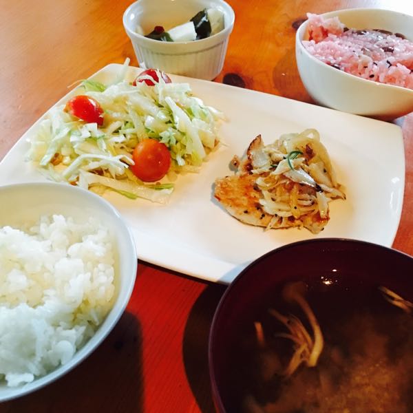 いただいたお赤飯甘納豆最高! いただいたカブで浅漬け いただいた大根で手作りの梅干しでサラダ 手作り味噌で久しぶりにお味噌汁 刻んで冷凍しておいたガーリックはとても便利! チキンガーリック焼き。 明日から適当な食事になると思われるので