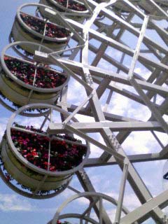 先日、ペコとばあばと一緒に「フラワーランド」という名前の花の公園へ行ってきたんです。名前通り、お花がいっぱいで広ーい公園でした。きれいな花がたくさん咲いていたので、写真をupしますね(^^)お花がぎっしり植えられた、花の観覧車。人は乗れません(^^; あぁ~・・・この公園の中に住みたい~。。。近くに住んでる人はいいなぁ~。いつでも来れて。・・・確か高校の時の修学旅行でディズニーランドへ行った時も同じことを言ったような気がしますね・・・(^^;