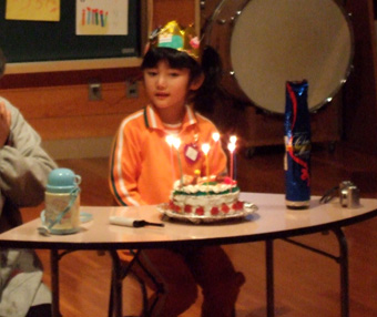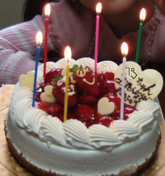 今日は、ろう学校で1月生まれの誕生会がありました。1月生まれの子供はペコ1人だけなので、お姫様のような待遇ですいい誕生会でしたよペコも始終ゴキゲンでしたろう学校での誕生会もこれで最後か~と思うとやっぱりちょっと寂しいですが。。・・・と言うわけで、お待たせしました今回作ったケーキをUPします今回のケーキのテーマは、「海」これは、今年度、遠足で水族館へ行ったことと、海上保安部で巡視艇に乗ったこともあって、ペコにとっては海での出来事が強く心に残っていたんだろうと思うんですよね、、「海のケーキがいいよ!」って言うので、じゃあそうしようってことになったわけです。。以前の日記でUPした初期の図案を元にして、練りに練って考えた結果、やっと昨日考えがまとまりました。見た目にこだわることにして、かなり変更したんです1.マジパンで海のなかまたちを作る(子供の人数分)2.海の部分はゼリーで作る3.基本はいちごケーキにする・・・ということで、準備準備なぜかトイザラスで発見!青いゼリー海にしようと思っていたゼリエースのメロン味がどうしても見つからず(季節的にないらしい)、あきらめかけた時の発見だったのでホントうれしかったしホッとしましたこのゼリーを使って、海の色を作ります。3つに分けて、1つはそのまま、2つめは黄色の食用色素を入れてグリーンに、3つめは緑の食用色素を入れて深い青緑に。食用色素っていうのは、こんなんです。赤・黄・緑・青があります。。ゼリーを固まらせている間に、マジパンで海のなかまたちを作ります。見本も何もないので、適当です「ヒトデ」一番最初にコレを作りました。まずは簡単なもので慣れようと思ってまだアラザンをくっつける心の余裕があります。「タコ」これも簡単まだまだ、アラザンをくっつける余裕があります。「かめ」この甲羅の模様を描いていて、ドッと疲れが・・・作るのにちょっと飽きてきてしまいました「人魚」気力が残っているうちにと思って、一番難しい人魚にチャレンジ結構イメージに近い出来具合になり、取りあえずホッ。。。「クジラ」ケーキの準備に取り掛かったのが夜の10時。コレを作っていたときにはすでに0時過ぎてましたも~、眠気が一気にこんにちは状態で、、ちょっと歪んでます「ニモもどき」ニモっぽいのを作ってみようと思って作ったんですけど、縞模様ってかなり難しい他の動物にくらべてかなり大きくなってしまいました。でも、作り直す時間の余裕がなく、取りあえずこれでOK「ペンギン」ペンギンの色ってどうなってたっけ~?って分からなくて、これはもう、適当です取りあえずペンギンには見える、かな~?「アシカ」これを作っているときには半分寝てましたどうしてもボールをくっつけられなくて、一晩乗せたらくっつくかな?と思ってそーっと乗せてから終わりにしたんですけど、朝起きたら転がってたし結局チョコペンをつなぎにしてくっつけましたゼリーは、半分凍らせてから5cm×3cmくらいのシートに分けて、きれいなグラデーションが出るように重ねていきます。ケーキの大きさに合わせて、直径18cmの丸い海を作っていきました。できたらまた冷凍庫へ入れておきます。ゼリーって凍らせても大丈夫なんですよ凍っていたほうがケーキの上に載せるときに簡単にできるので、ラップに包んでスタンバイですそれから、スポンジにはさむためのいちごをスライスし、ケーキの横に貼り付けるための魚の形のいちごを型抜きしたらようやく準備完了今日のケーキ作りは、大体イメージ通り、無事に作り上げることができましたそれが、こちら!!ジャ~ンななめ横から見たらこんな感じ。部屋がものすごく寒くて、ゼリーがなかなか溶けてくれなかったんですよ、、だから透明感がイマイチです。。それから、クリームがちょっと足りなかったこの2点が残念だった点かな。。でも、うまく出来たと思いますペコの誕生会のケーキを3年間作ってきて分かったのは、ケーキのデコレーションって意外と奥が深いなってこと食べられるものなら何でも素材にできるので、もっともっと楽しいケーキが出来るはずなんですよね~もし、飴細工とか、チョコレート細工にハマったら、抜け出せなくなりそうです。。。今回で、私のデコレーションケーキは一旦これで卒業ですが、またペコからリクエストがあれば考えて作ってみたいと思いま~す