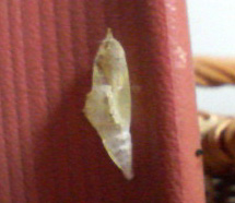 昨日羽化するかと思っていたんですけど、結局羽化せず今日、ペコの言語訓練を終えて、夜7時前に家に帰ってきてみたら、、、あっ!!ぬけがらになってる!!本体はどこ行ったんだろアセアセ。。あっ、いた~~~~よかった~立派な蝶になれて、ホントによかったよかった。。。とりあえず、おなか空いてるだろうから、砂糖水がいるなぁ。。。う~ん、、、容器と色画用紙使って、、、こんなの作ってみました気分出そうと思って昔、モンシロチョウは黄色い花が好きって聞いたことがあるんですよ、、とまってくれるかなぁ?外があまりにも寒いので、取りあえずうちで飼ってみることにします。金魚を飼ってた時の水槽に移して。いちごファーム移住計画も視野に入れております。。モンシロチョウ君、春になるまで生きていてくれるのかなぁ?と思って寿命を調べたところ、2週間前後だそうです。。。う~ん・・・早くあったかい春になってくれ~~~!