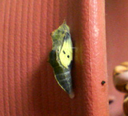 昨日から一層ハッキリしてきた羽の模様・・・。緑だったからだの色が、黒くなるんですよ、、こうなったらもう、羽化直前です・・・。写真です ↓ ↓ ↓ ↓たぶん、数時間のうちに羽化してしまうと思います。。まだ外はこんなに寒いって言うのに・・・なんてこった。。取りあえず、今、2008年2月4日午後10時30分の記録としてUPします。またここにその後の記事を付け足していきますね頑張れあおむし君!