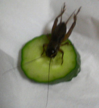 私の自由時間は夜10時~1時くらいまでの3時間。縫い物や食事の仕込みなどで削られることもありますが、大体その間にいつも一息ついています。。先日私が真夜中にPCメールをチェックしていると、黒い影がカサコソ・・・。ゲッ!ゴキ出た!?と思ったけれど何だか動きが遅い・・・。ん~?と思ってよく見たら、コオロギなのでした・・・。このコオロギ、まだ幼虫です。羽が生えていないんですよ。コオロギは生まれたときからコオロギの姿をしている、不完全変態(さなぎの時期がない)の昆虫なんですけど、このコはあと1~2回脱皮したら成虫になれる状態(終齢かその前くらい)です。短いですけど、産卵管がついているので、女の子です。(元、虫博士ネロリの、ありったけな知識が炸裂)しかしこのコは元気がなさ過ぎます・・・。ヨロヨロしている感じで・・・。お腹が空いているのか??折角うちにきたんだから、きゅうりと煮干でも出そうかな、、と思って、もてなしてみました。すると・・・、ものすごい勢いで、がっつくがっつく!そうか、やっぱり腹ペコだったのねぇ~、たくさんお食べ~と思いつつ私はそのまま就寝次の日の朝、深く穴の空いたきゅうりを確認コオロギはどこかへ行ってしまっていました。。。しかし、、それから2日後の真夜中、、またもやコオロギが私のところへやってきました。一体どこにいてどこからやってくるのか??とりあえずまたきゅうりと煮干を出したら、やっぱりスゴイ勢いで食べてました・・・というわけで、うちではコオロギを放し飼いしてますはやく立派なレディーになれよ~話は変わって、、先日沖縄旅行へ行っていた父からお土産をもらいました。琉球ガラスの素敵なグラスと、、、塩胡麻ちんすこうと、、、古酒 蔵出し泡盛。。泡盛はやっぱりこのグラスに注いで、ちびちび飲むとしよう。。塩胡麻ちんすこうは、さっき食べてみました。・・・食べた瞬間は、普通のちんすこうじゃん!?って思ったんですけど、後味にちょっぴり塩気と胡麻の香りが来るんだなぁ・・・ん~~~~!美味!!何というか、昔キャラメルコーンに入っていたピーナッツの塩味のような懐かしさというか・・・。塩スイーツ、、私は結構好きですけど、、皆さんはどうですか~??